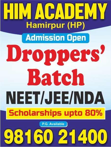 Him Academy Public School HPAS), Hamirpur student Shashwat Sharma, of grade + 2 has topped the of JEE Main Paper-2 B-Planning by securing 1st Rank in Himachal Pradesh The Director, the HAPS, Er. Pankaj Lakhanpal said, “Shashwat has brought great honour for his parents and the school securing 98.50 percentile and first rank in the state.” He…